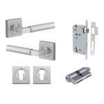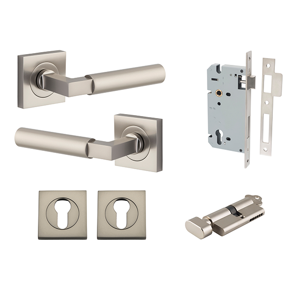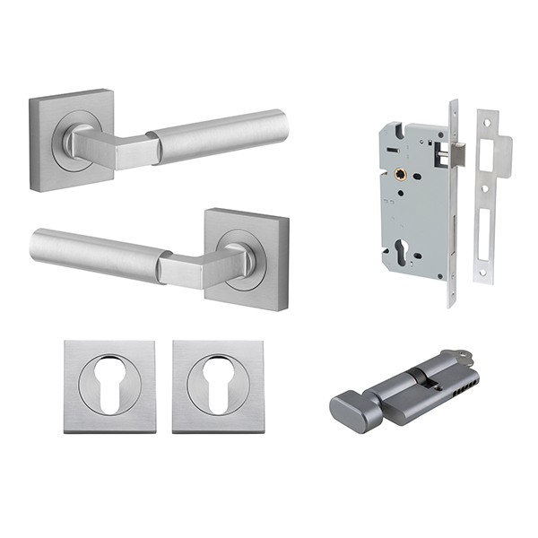 The Berlin lever can be purchased as a passage, privacy or entrance kit which includes all components required for your door to function.