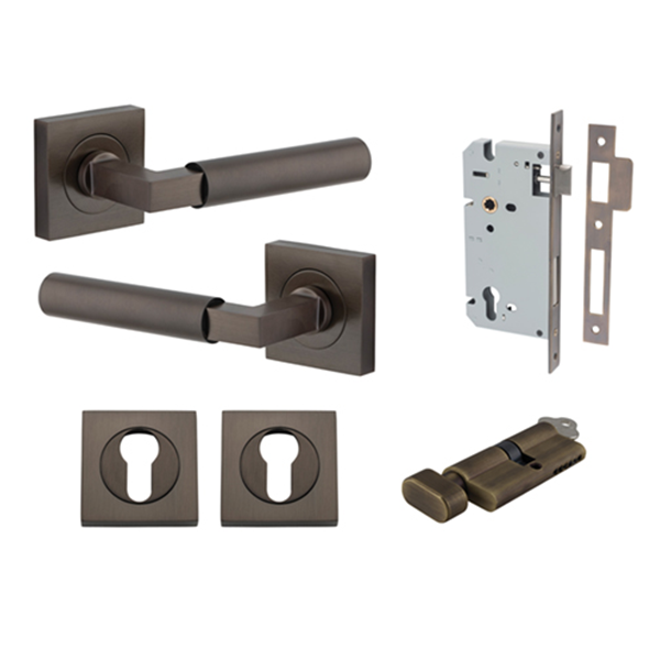 2 x Berlin Levers on Square Rose with Inbuilt Privacy Pin to suit selected Finish