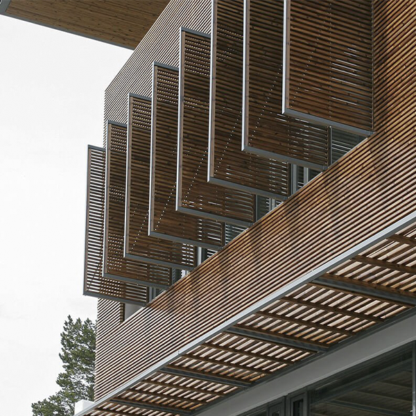 Luna SHP 42×42 is a premium ThermoWood® batten, ideal for facades, solar shades, interiors, and other decorative surfaces. Lunawood SHP battens are dimensionally stable and low-maintenance, enabling diverse designs in a sustainable manner. If left untreated outside, it develops a beautiful silver grey patina.